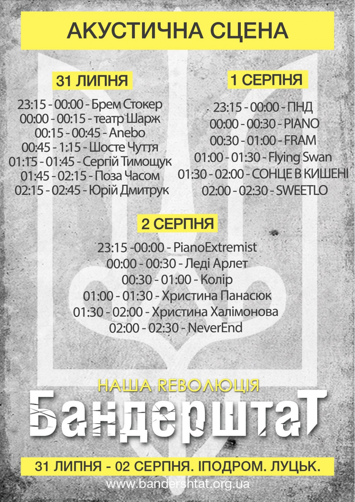 За тиждень у Луцьку стартує найпатріотичніший і найтверезіший фестиваль України "Бандерштат-2015" + 34 музичні гурти та виконавці!