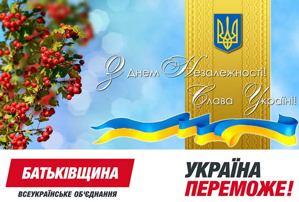 Вітання районного осередку ВО "Батьківщинa" з нагоди 25-річчя Незалежності України