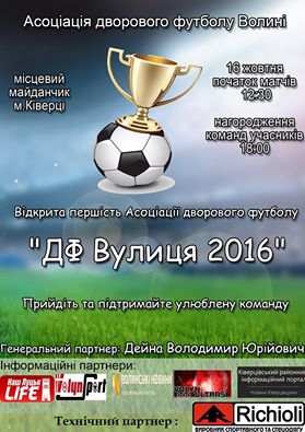 16 жовтня - Відкрита першість АДФ "ДФ Вулиця - 2016" (футбольний корт у парку)