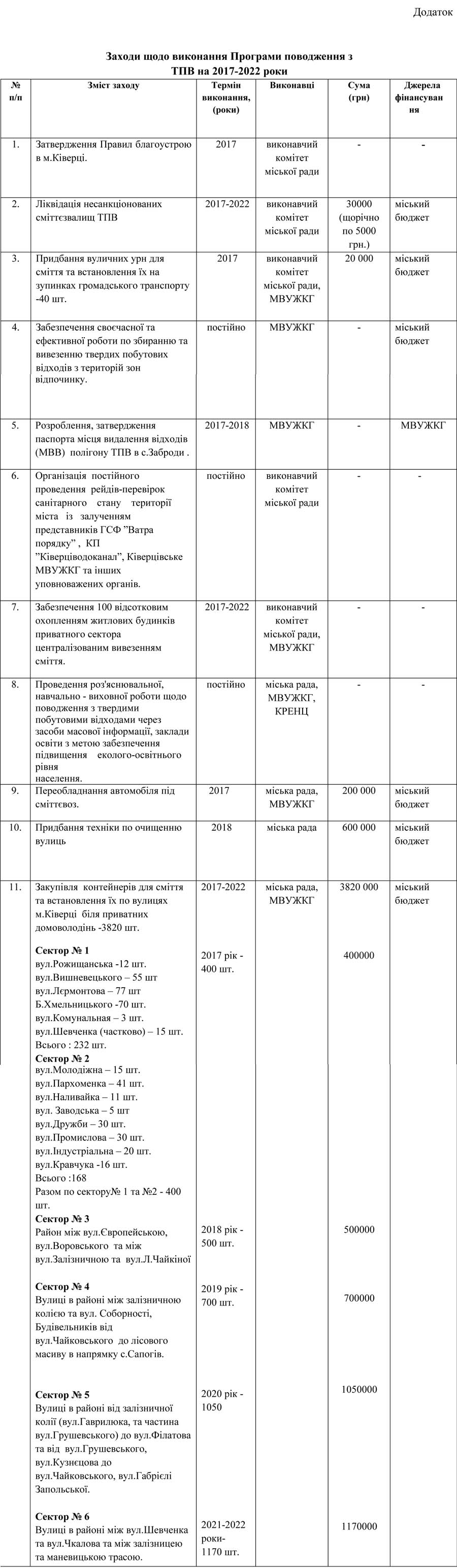 1.1. Програма поводження з твердими побутовими відходами в м. Ківерці на 2017-2022 роки (далі – Програма) – це комплекс взаємопов’язаних та узгоджених в часі заходів: